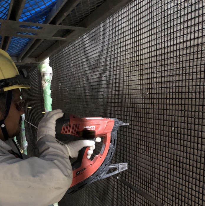 モルタル吹き付け グリッド取り付け